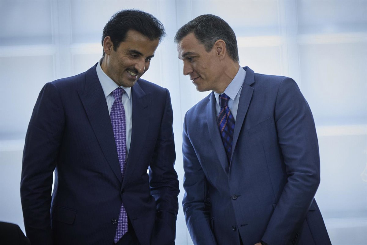 Archivo - El Emir de Qatar, Tamim bin Hamad Al Thani (i) y el presidente del Gobierno, Pedro Sánchez. - EUROPA PRESS/J. Hellín. POOL - Europa Press