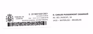 El expresidente de la Generalitat Carles Puigdemont ha acusado al Tribunal de Cuentas de hacer "política hasta en los sobres que envía" después de que en enero le trataran como 'Muy Honorable Señor' y ahora como 'Don' en la notificación en el que le citan el 28 de enero de 2020 por los gastos del 1-O.