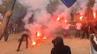 En la plaza Sant Jordi, un grupo ha quemado con bengalas algunas 'esteladas' y también banderas de la ANC con la consigna 'Hola República', mientras cantaban consignas a favor de la unidad de España y hacían saludos fascistas.