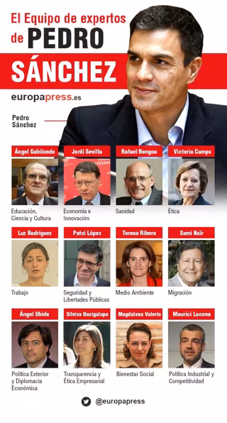 Este grupo está compuesto por expertos que son "del PSOE y de fuera", como ha descrito el propio Sánchez, quien ha defendido que su elección se basa en el deseo de tener "a los mejores" para el "cambio" que quieren hacer en España. Estos son sus nombres, su cometido y una breve biografía de cada uno de los miembros del grupo.