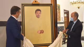 El exministro de Justicia Rafael Catalá ha acudido este martes al acto de desvelo y posterior colocación de su retrato oficial en la galería de los ministros, en el Ministerio de Justicia.