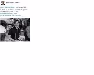 "Miguel Ángel Blanco representa la libertad y la democracia en España. Un ejemplo para todos, no te olvidamos", ha escrito Rajoy en su cuenta de Twitter, firmando con sus iniciales lo que indica que es un mensaje personal suyo.