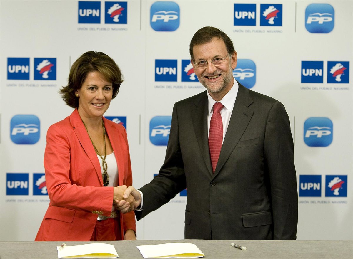 El presidente del Partido Popular, Mariano Rajoy, y la presidenta de UPN, Yolanda Barcina, han suscrito en Pamplona el acuerdo por el que ambos partidos concurrirán en coalición a las próximas elecciones generales y han coincidido en manifestar que con este pacto "gana Navarra" y que es compatible con el Gobierno de coalición que mantienen en la Comunidad foral UPN y PSN.