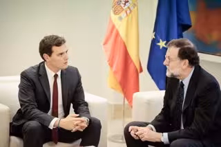 El presidente del Gobierno, Mariano Rajoy, ha conversado este miércoles con el líder de Ciudadanos, Albert Rivera, antes del inicio del Consejo de Ministros extraordinario fijado para las 9.00 horas que aprobará los próximos pasos que se van a dar en Cataluña, según han confirmado fuentes de Ciudadanos.