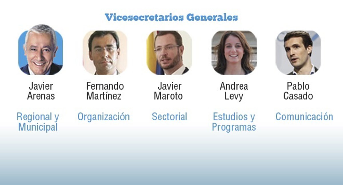 El presidente del Gobierno, Mariano Rajoy, tomará a partir de ahora las riendas del Partido Popular, estando más presente en la vida diaria y en sus comités de dirección, pero lo hará rodeado de una nueva generación de dirigentes como Pablo Casado, Andrea Levy o Javier Maroto.