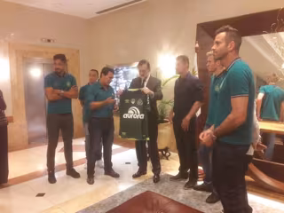 Los integrantes del Chapecoense, que este jueves se enfrenta al Nacional en el Parque Central de Montevideo en la Copa Libertadores, han saludado al presidente español en el hall del hotel y le han obsequiado con una camiseta firmada por los jugadores.