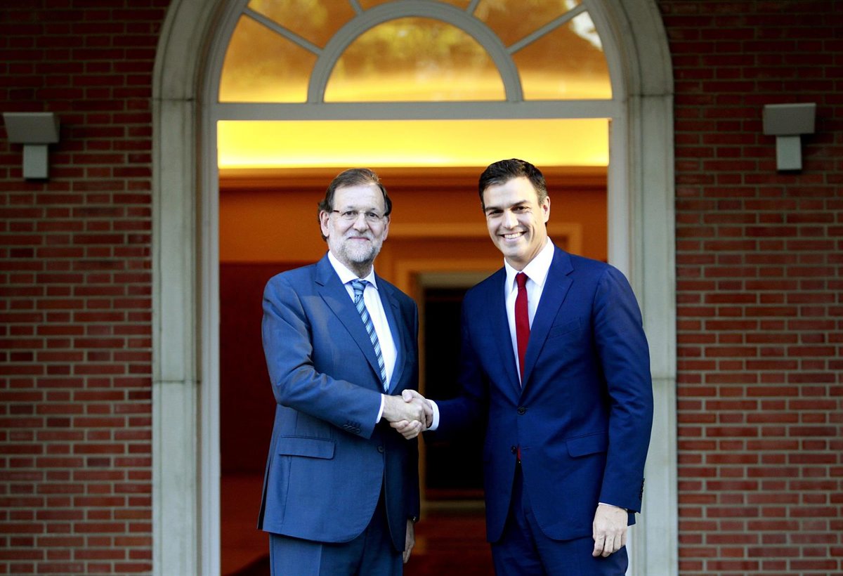 El presidente del Gobierno, Mariano Rajoy, ha recibido a las 17.00 horas al secretario general del PSOE, Pedro Sánchez, en el Palacio de la Moncloa para abordar la 'hoja de ruta' a seguir después de que el Parlamento catalán aprobara este lunes la declaración secesionista que anuncia el deseo de comenzar la "desconexión" de España y "proclama solemnemente" el inicio de la construcción de una República catalana.