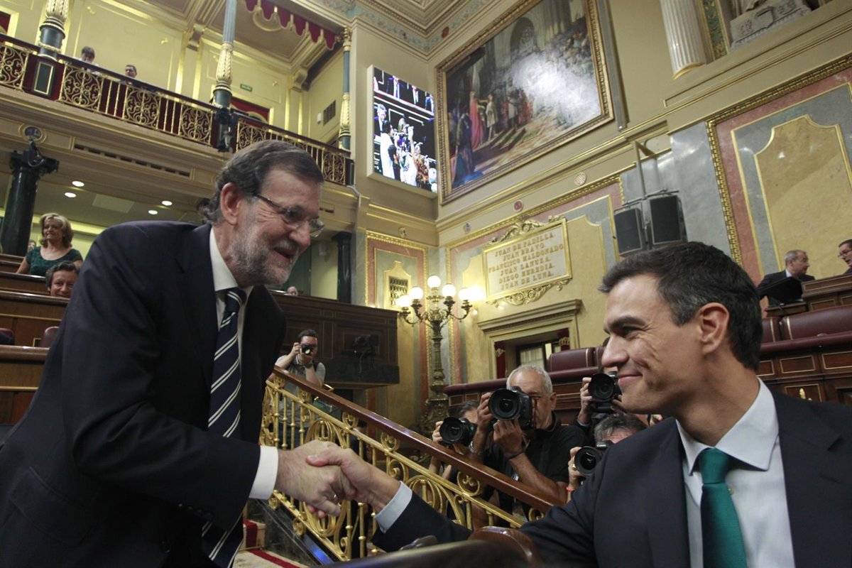 El presidente del Gobierno, Mariano Rajoy, ha recibido al líder del PSOE, Pedro Sánchez, en el Pleno del Congreso recordándole que apoyó desde su escaño al Ejecutivo socialista que dejó al PP "una montaña de problemas", pese a los cuales, ha dicho, ahora los españoles miran al futuro con "esperanza".