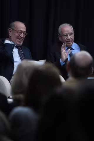 Archivo - El exsecretario general del Partido Socialista de Euskadi, Nicolás Redondo Terreros (i), y el exvicepresidente del Gobierno, Alfonso Guerra (d), durante la presentación de un libro, a 12 de diciembre de 2023, en Madrid - Fernando Sánchez - Europa Press - Archivo