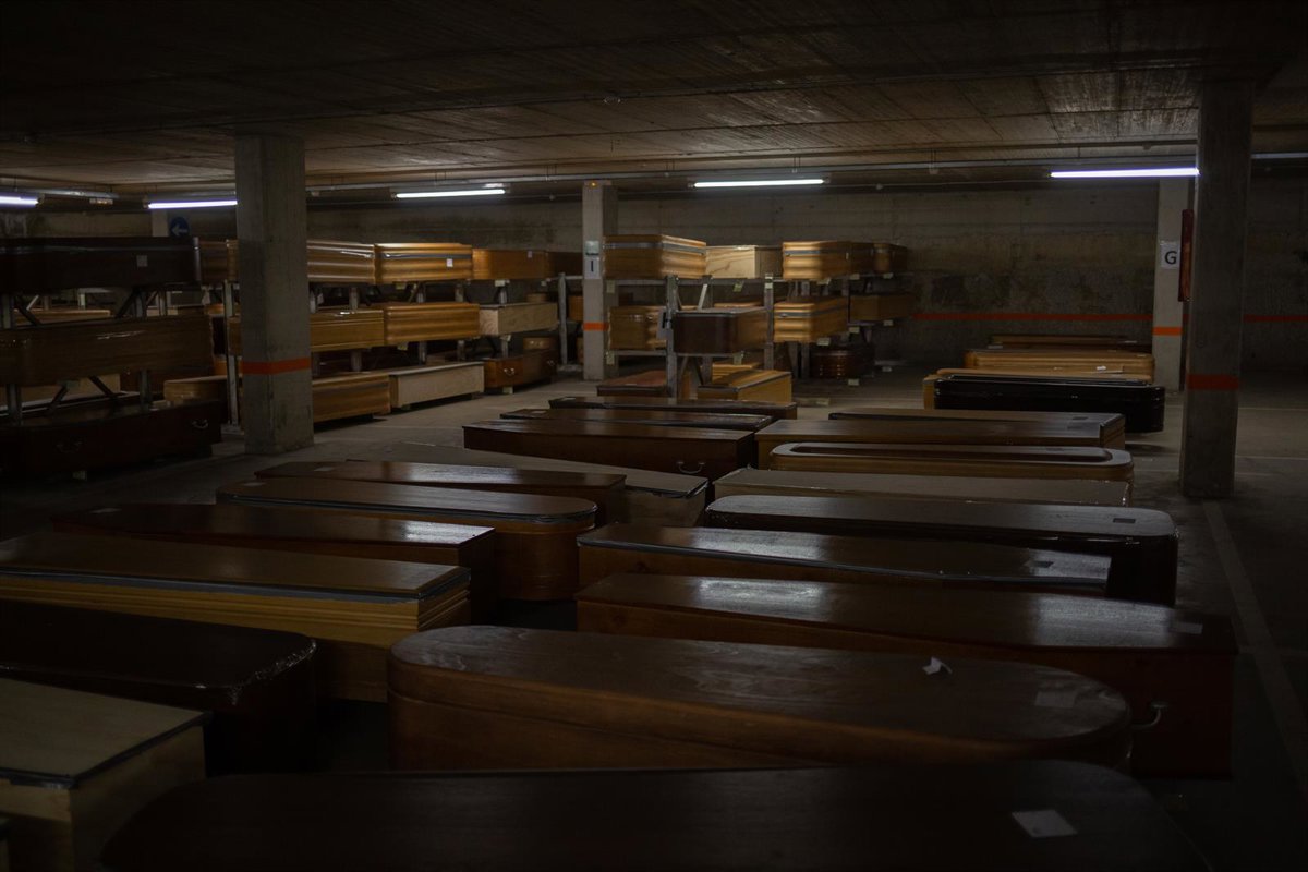 Tanatorio de campaña de Collserola situado en las dos plantas de parking del Tanatorio de Collserola. En Collserola/Barcelona/Catalunya (España) a 8 de abril de 2020. - David Zorrakino - Europa Press