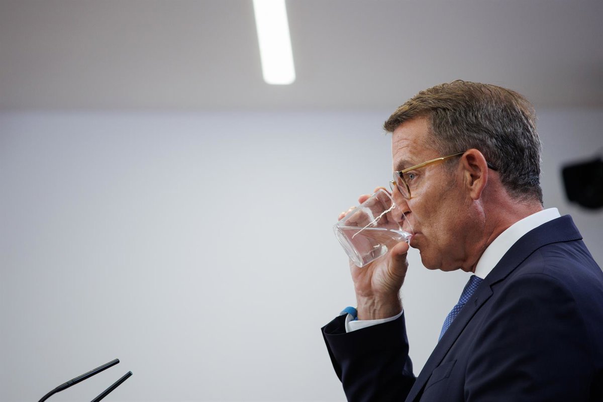 El presidente del PP y candidato a la Presidencia de España, Alberto Núñez Feijóo,en una rueda de prensa - Alejandro Martínez Vélez - Europa Press