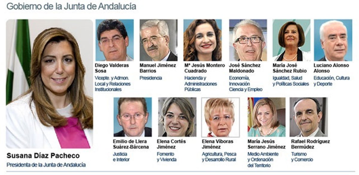 Esta es la composición del nuevo Gobierno andaluz presidido por Susana Díaz hecho público por la Oficina del Portavoz en un comunicado: