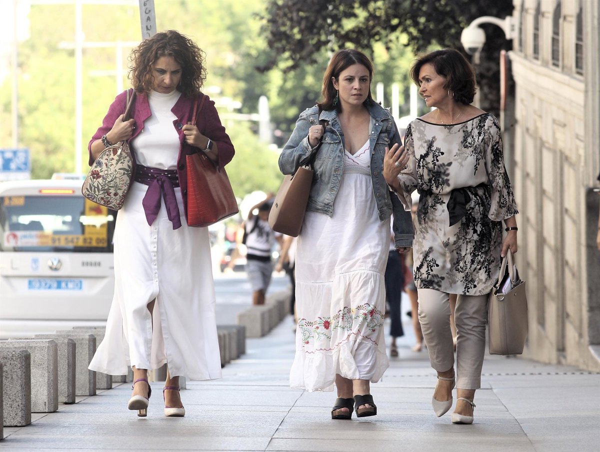 Llegada del equipo negociador del PSOE a la reunión con Podemos para formar un posible Gobierno. (I-D) La ministra de Hacienda en funciones, María Jesús Montero; la portavoz del PSOE en el Congreso, Adriana Lastra; y la vicepresidenta del Gobierno en fu - Eduardo Parra - Europa Press