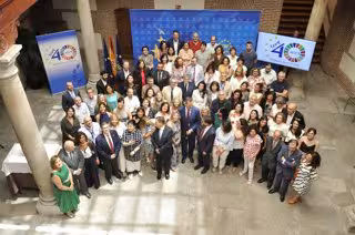 Foto de familia del Rey Felipe VI (primera fila 8d), junto a los asistentes al acto conmemorativo del 40 aniversario de las primeras elecciones democráticas. - FEMP - Archivo