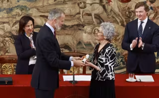 El Rey, Felipe VI, entrega el galardón a la historiradora estadounidense, Carla Rahn Phillips, a 11 de octubre del 2024. - CASA DE S.M. EL REY