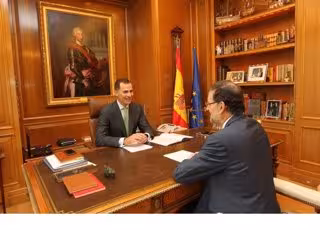MADRID, 20 Jun. (EUROPA PRESS) - El Rey Felipe VI ha compartido este viernes con el presidente del Gobierno, Mariano Rajoy, su impresión de que los actos de su proclamación fueron "bastante bien", según han captado los micrófonos de los medios de comunicación que han grabado el inicio de su primer despacho en el Palacio de la Zarzuela. Don Felipe ha recibido con un "presidente, buenos días" al jefe del Ejecutivo en pie en la puerta de su nuevo despacho, el que antes usaba el Rey Don Juan Carlos. "Buenos días", le ha contestado Rajoy, que ha inclinado la cabeza ante el monarca. A continuación ambos han tomado asiento. Rajoy le ha entregado un documento, mientras el monarca sacaba otros papeles de una carpeta. "¿Cómo fue todo? Creo que bastante bien", ha comentado el Rey a Rajoy. "Yo creo que estuvo bien", le ha respondido el jefe del Ejecutivo, que se refiere con un "vaya paliza" a la jornada que vivieron ayer los nuevos monarcas. El despacho entre ambos, el primero del reinado de Felipe VI, ha durado algo más de una hora, ha informado a Europa Press un portavoz de Casa Real. La reunión se ha celebrado en el despacho que antes usaba el Rey Don Juan Carlos y que está situado en la primera planta del Palacio de la Zarzuela, que sigue siendo la residencia del anterior monarca y su esposa, Doña Sofía. Los Reyes Don Felipe y Doña Letizia mantienen su residencia en una casa situada en el mismo complejo de la Zarzuela, pero separada del Palacio, por lo que el nuevo monarca solo ha cambiado de despacho, en el que ya ha hecho algunos cambios. El más llamativo es el cambio de cuadro situado en la pared que queda detrás de la mesa de trabajo. Si Don Juan Carlos tenía colgado un retrato de Felipe I de Parma, Felipe VI ha elegido un cuadro de Carlos III, uno de sus monarcas favoritos. La historiadora Carmen Iglesias, que ha sido profesora de Historia y Humanidades de Don Felipe, desveló hace unos días en una entrevista en TVE que Carlos III era uno de los Reyes favoritos tanto de ella como del Príncipe y ha destacado las expediciones científico militares que se desarrollaron bajo su reinado y que continuó después Carlos IV. Carlos III, aunque fue un monarca absoluto, practicó el despotismo ilustrado de la época y llevó a cabo reformas importantes. Otorgó poder político a la burguesía, liberalizó el comercio, impulsó la investigación científica y reformó la docencia. En política exterior, consiguió recuperar Menorca, que había caído en manos de los ingleses. También se le conoce como el "rey alcalde" de Madrid por el cambio radical que imprimió al aspecto de la ciudad. Ordenó limpiar, empedrar e iluminar las calles, creó una policía urbana y a él se debe también el diseño actual del Paseo del Prado. El cuadro elegido por Felipe VI fue pintado en el siglo XVIII por el checo Anton Raphael Mengs. APOYO A LA SELECCIÓN El Rey también ha incorporado a su mesa de trabajo una réplica de la la Copa del Mundo que ganó la Selección Española de Fútbol en 2010 en Sudáfrica. La elección se produce apenas unos días después de que 'La Roja' haya sido la primera selección eliminada del Mundial de Brasil. En los últimos seis años, la Selección Española de Fútbol ha ganado un Mundial y dos Eurocopas.