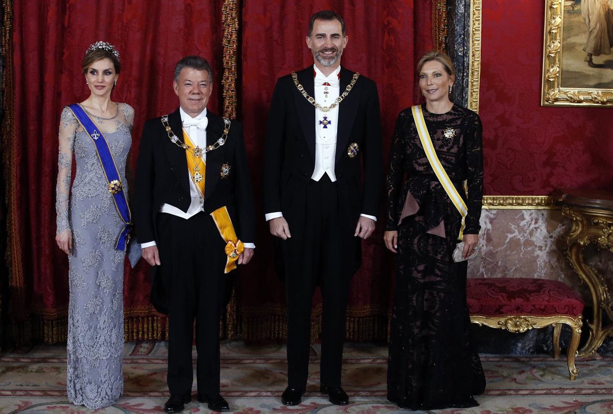En la cena de gala que los Reyes ofrecen esta noche en el Palacio Real al presidente colombiano, Juan Manuel Santos, con motivo de su visita de Estado a España, Felipe VI ha saludado los "avances muy esperanzadores" que el diálogo con las FARC ha experimentado en los dos últimos años.