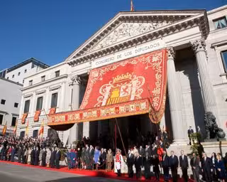 A continuación, la comitiva se dirigirá al pie de la escalinata del Palacio del Congreso, lugar en el que tendrá lugar, en torno a las doce y diez del mediodía, el saludo a los presidentes del Congreso, Ana Pastor, y del Senado, Pío García Escudero, y los miembros de las Mesas de ambas cámaras.