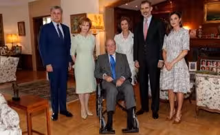 La Casa del Rey ha difundido este lunes una fotografía de los Reyes Felipe y Letizia y Juan Carlos y Sofía junto a Margareta de Rumanía y su esposo en el Palacio de la Zarzuela, una imagen en la que puede verse a Don Juan Carlos en silla de ruedas.