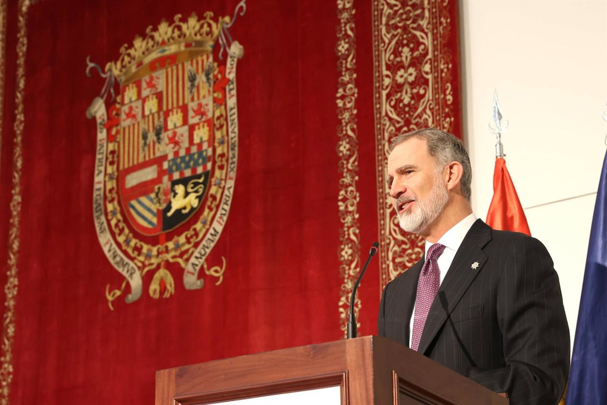 El Rey Felipe VI interviene durante la ceremonia de entrega de despachos a la LXXV promoción de la Carrera Diplomática en la Escuela Diplomática en Madrid - CASA S. M. EL REY