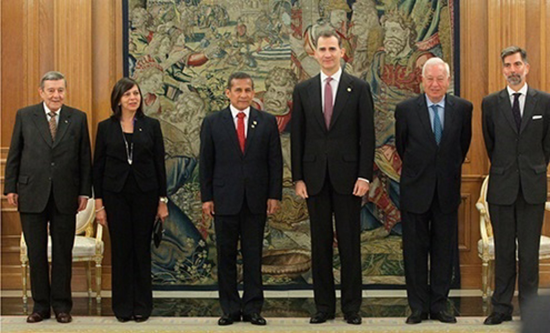 El Rey Felipe VI ha recibido este viernes al presidente de Perú, Ollanta Humala, en el Palacio de la Zarzuela, durante la visita de trabajo de dos días que el presidente iberoamericano realiza a España, según ha informado el Ministerio de Exteriores. El ministro de Exteriores en funciones, José Manuel García Margallo, ha acompañado al monarca durante la recepción.