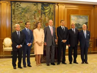 Tras la foto, los asistentes se quedaron unos minutos charlando entre ellos en el Salón de Audiencias. "La segunda reforma de la Constitución...", le dijo Zapatero al Rey al iniciar una conversación entre ellos.