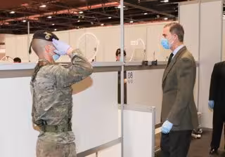 El jefe del Estado se encuentra acompañado por la ministra de Defensa, Margarita Robles, y por el alcalde de Madrid, José Luis Martínez Almeida. Está previsto que este hospital, puesto en marha con la Comunidad de Madrid con el Ministerio de Sanidad y la Unidad Militar de Emergencias (UME) llegue a tener las 1.500 camas programadas la semana que viene, aunque podría ampliarse hasta 5.500.