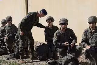 En las imágenes que ha distribuido la Casa del Rey se ve a Felipe VI saludando a la Princesa de Asturias y a sus compañeros, pertrechados con uniformes y distinta equipación militar como casco y fusil de asalto y también dirigiendo unas palabras a los integrantes de la unidad de la heredera del trono.