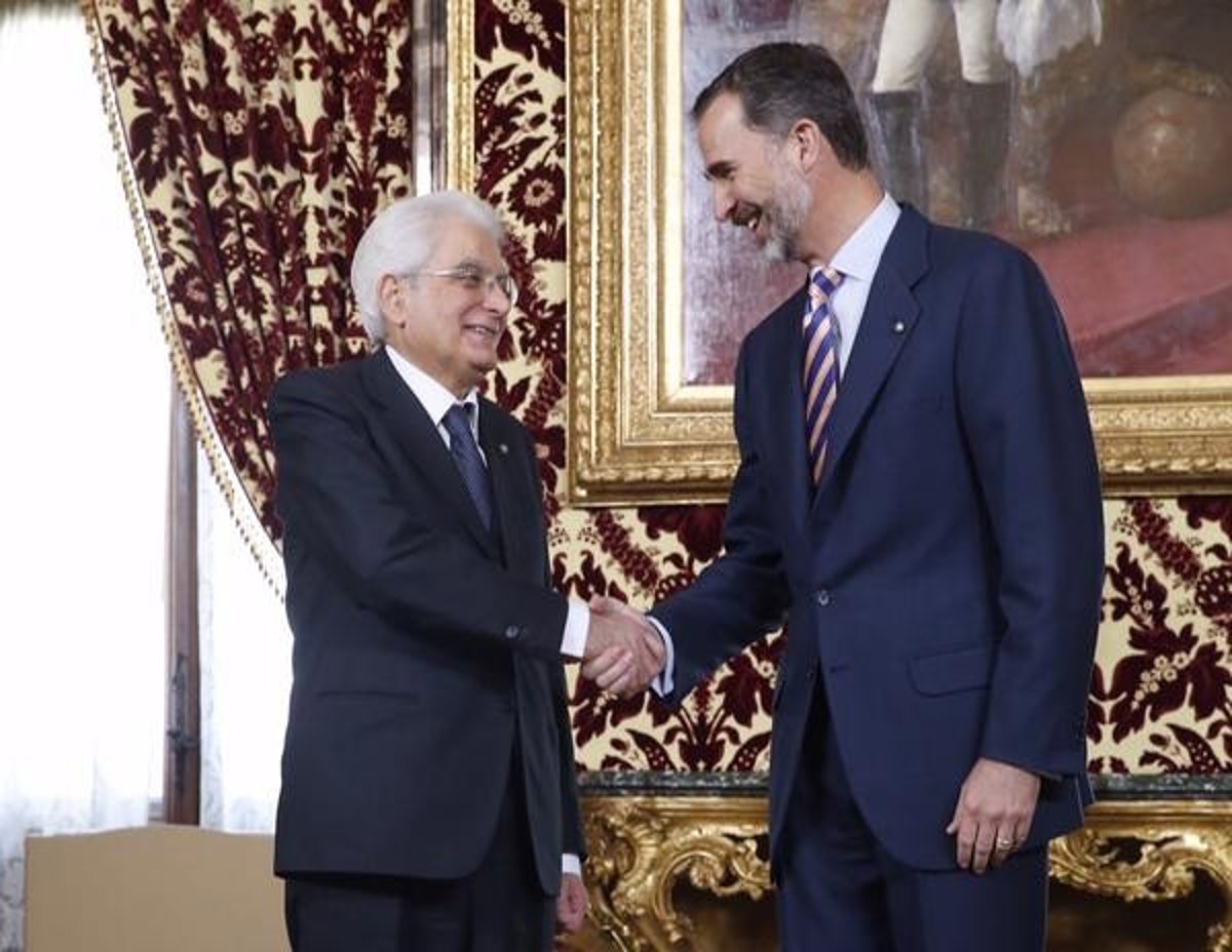 Los Reyes Don Felipe y Doña Letizia han abordado este lunes el reto de la inmigración en el Mediterráneo con el presidente de Italia, Sergio Mattarella, que visita Madrid dentro de la gira de presentación que inició por las capitales europeas a partir de su toma de posesión en febrero pasado.