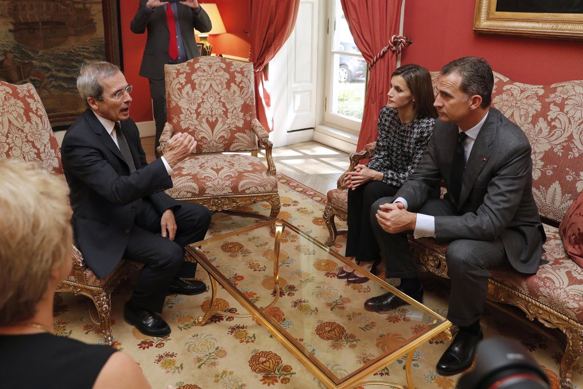 En la residencia de la embajada de Francia han permanecido reunidos con el embajador durante media hora. Saint-Geours ha aprovechado para informar a los Reyes de las últimas noticias en torno al atentado terrorista. La esposa del embajador le acompañó en su encuentro con los monarcas.