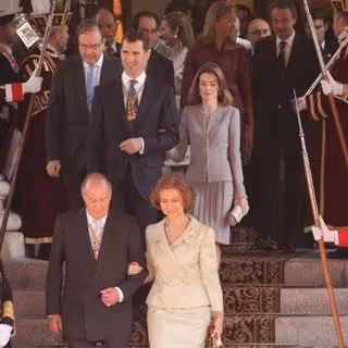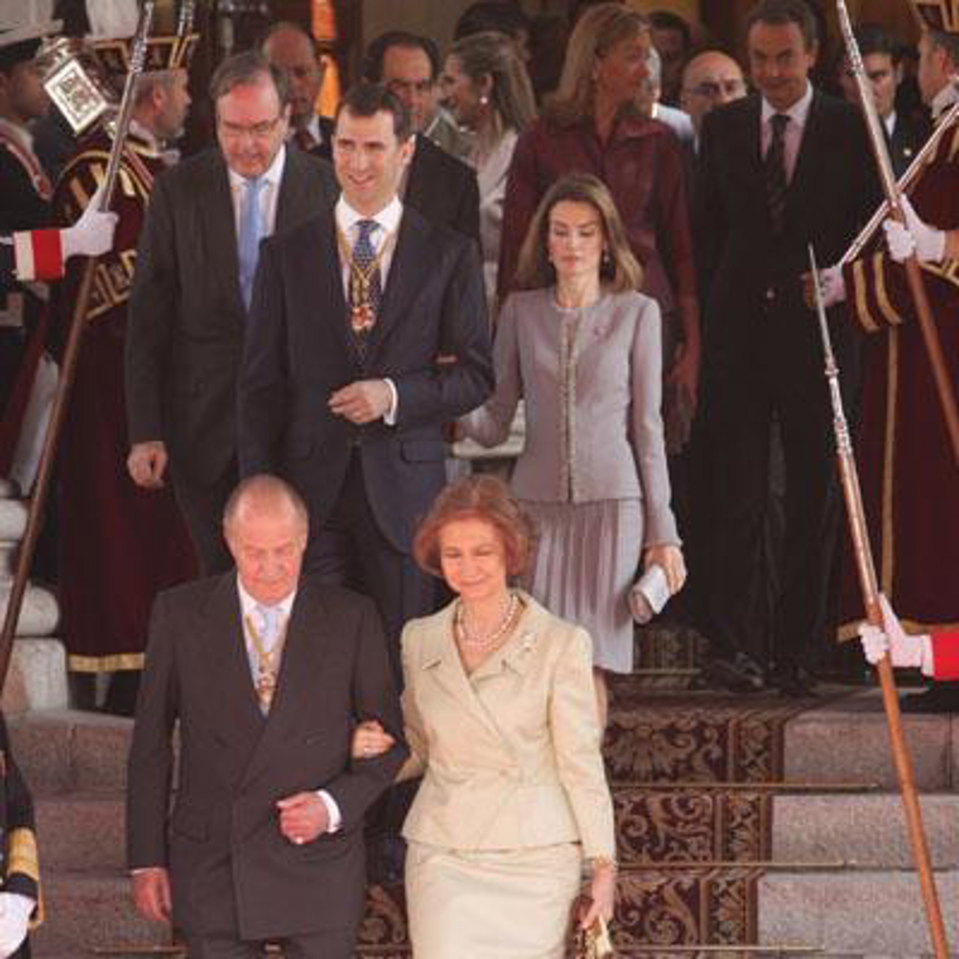 A su llegada al Palacio de la Carrera de San Jerónimo, Don Juan Carlos y Doña Sofía fueron recibidos por el presidente del Gobierno, José Luis Rodríguez Zapatero, y el Jefe del Estado Mayor de la Defensa, Félix Sanz Roldán, quienes se situaron en el podio para recibir honores por el Batallón de los Tres Ejércitos.