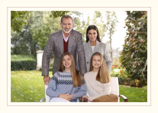 La imagen elegida para la ocasión muestra a los Reyes y sus hijas en un jardín, presumiblemente en el Palacio de la Zarzuela, vestidos de manera informal y sonrientes. Don Felipe y Doña Letizia están de pie apostados detrás de Leonor y Sofía, que aparecen sentadas.