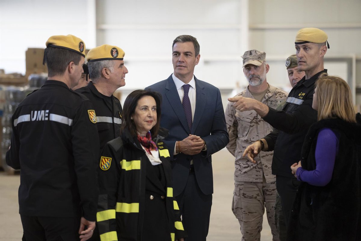 Archivo - El presidente del Gobierno, Pedro Sánchez (3d), y la ministra de Defensa, Margarita Robles (2i) visita las unidades del Ejército que colaboran en la ayuda y reconstrucción de la DANA en el Cuartel General Terrestre de Alta Disponibilidad de Béte - Jorge Gil - Europa Press - Archivo