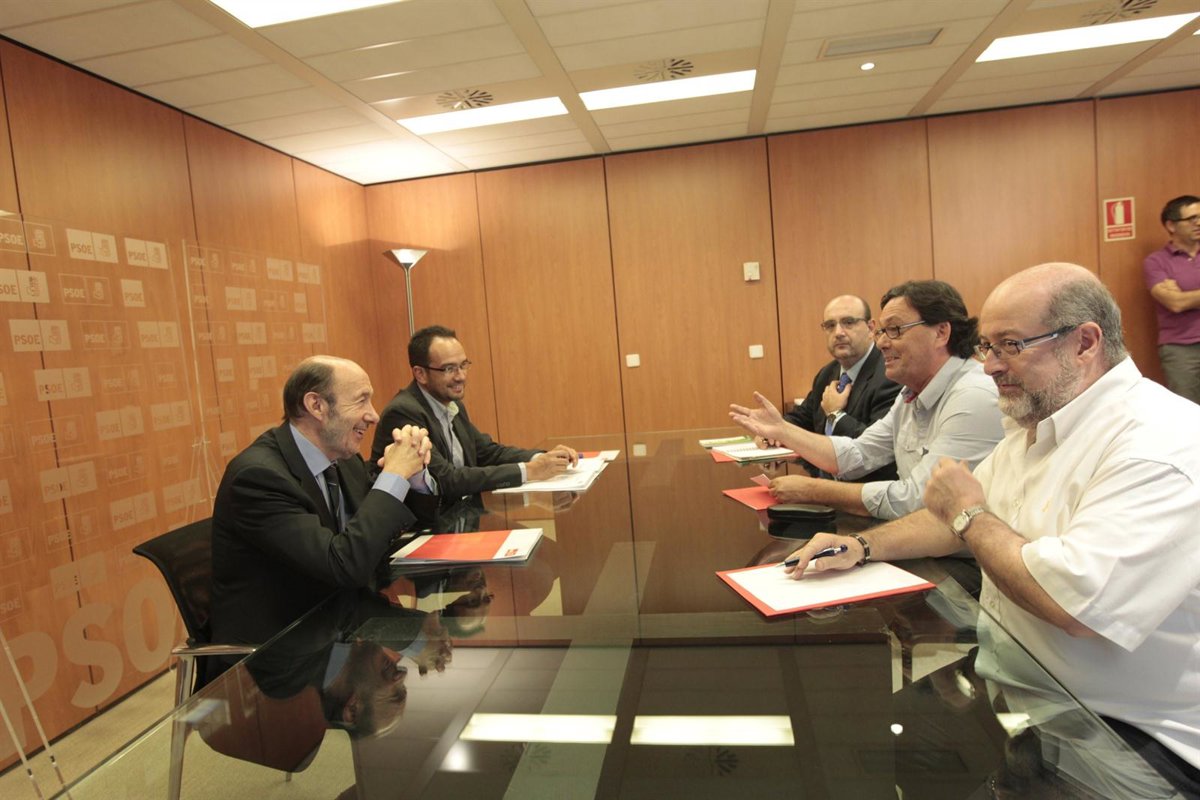 El secretario general del PSOE, Alfredo Pérez Rubalcaba, se ha comprometido con los sindicatos de la función publica para defender la imagen de los funcionarios "de los ataques soterrados que están recibiendo tanto por parte del Gobierno, como por parte del PP".