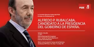 "La Comisión Ejecutiva Federal te invita a la proclamación de Alfredo P. Rubalcaba, candidato a la Presidencia del Gobierno de España", reza el texto, escrito en blanco sobre una tarjeta de fondo íntegramente rojo.
