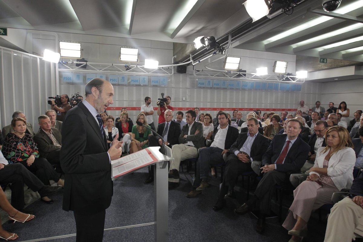 La reunión, celebrada en la sede del PSOE, estaba convocada para que el candidato presentase a los parlamentarios el borrador de documento de la Conferencia Política, de la que saldrá el programa socialista para el 20-N, pero finalmente sólo ha esbozado líneas generales y no les ha facilitado el documento, que el PSOE prevé hacer circular entre sus militantes el próximo día 10.