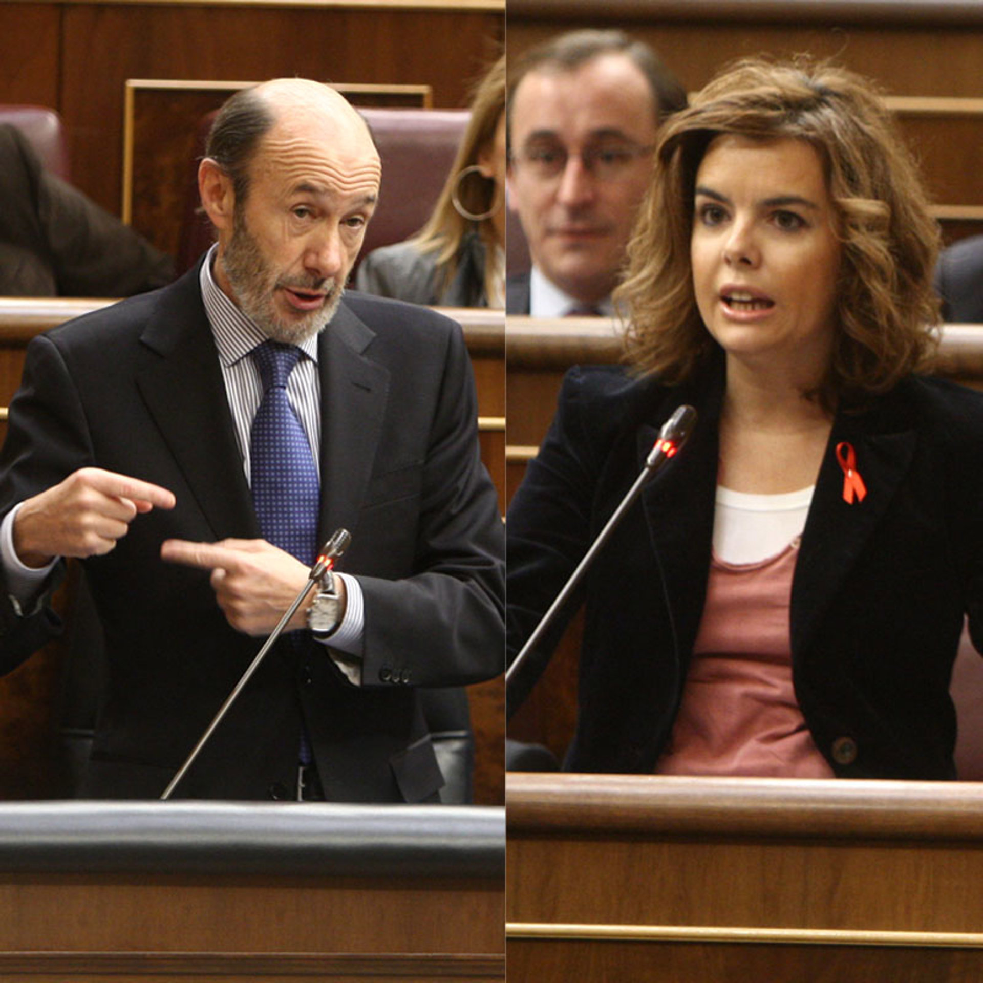 El vicepresidente primero del Gobierno, Alfredo Pérez Rubalcaba, y la portavoz parlamentaria del PP, Soraya Sáenz de Santamaría, se han acusado mutuamente de no trabajar por los 4,8 millones de parados y de minar con su actitud la confianza internacional en España y en su capacidad de salida de la crisis.