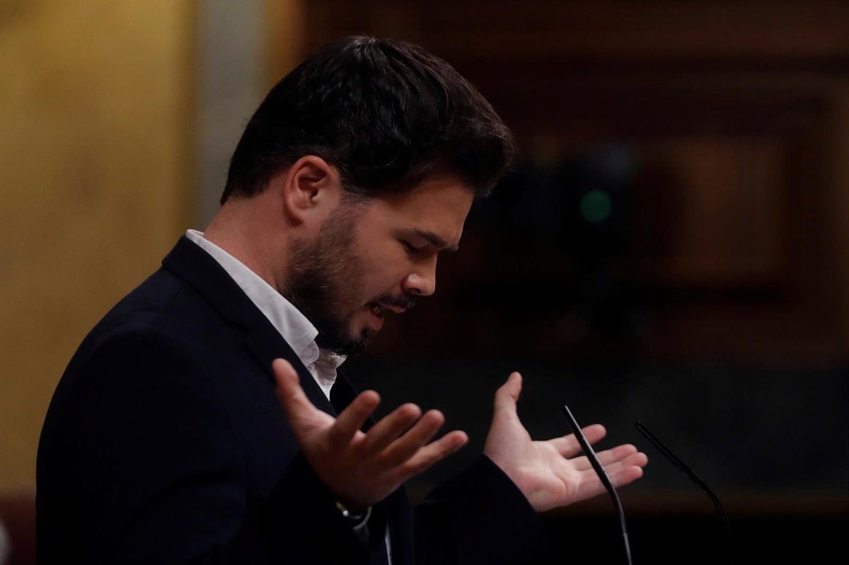 El portavoz de ERC, Gabriel Rufián, durante su intervención en el pleno del Congreso este miércoles en el que el jefe del ejecutivo expone los resultados de los últimos consejos europeos y los motivos por los que solicita una nueva prórroga del estado d - Pool