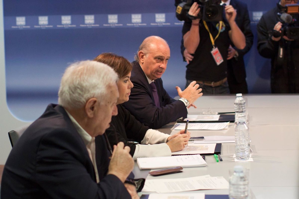 Sáenz de Santamaría ya presidió este domingo una reunión a la que asistieron, además de Sanz Roldán y Martínez, los titulares de las carteras de Interior, Jorge Fernández Díaz, y de Exteriores y Cooperación, José Manuel García Margallo, así como el secretarios de Estado de Asuntos Exteriores, Ignacio Ybáñez.