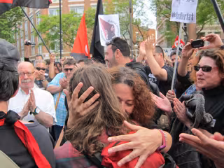 Los primeros en abrazarla han sido sus familiares que han corrido emocionados hasta las puertas de la prisión de mujeres Wad-Ras de Barcelona y, a continuación, centenares de compañeros del sindicato le han dado la bienvenida rodeándola con calurosos cánticos exclamativos de '¡Laura, libertad!' y '¡Que viva la lucha de la clase obrera!'.