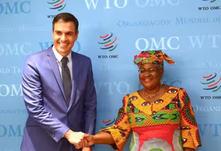 "Reunión en Ginebra con la directora general de @wto, @NOIweala, a quien he agradecido su liderazgo al frente de la organización. Hemos abordado asuntos como la crisis alimentaria derivada del conflicto en Ucrania y la importancia de seguir avanzando en una agenda multilateral", ha escrito Sánchez.