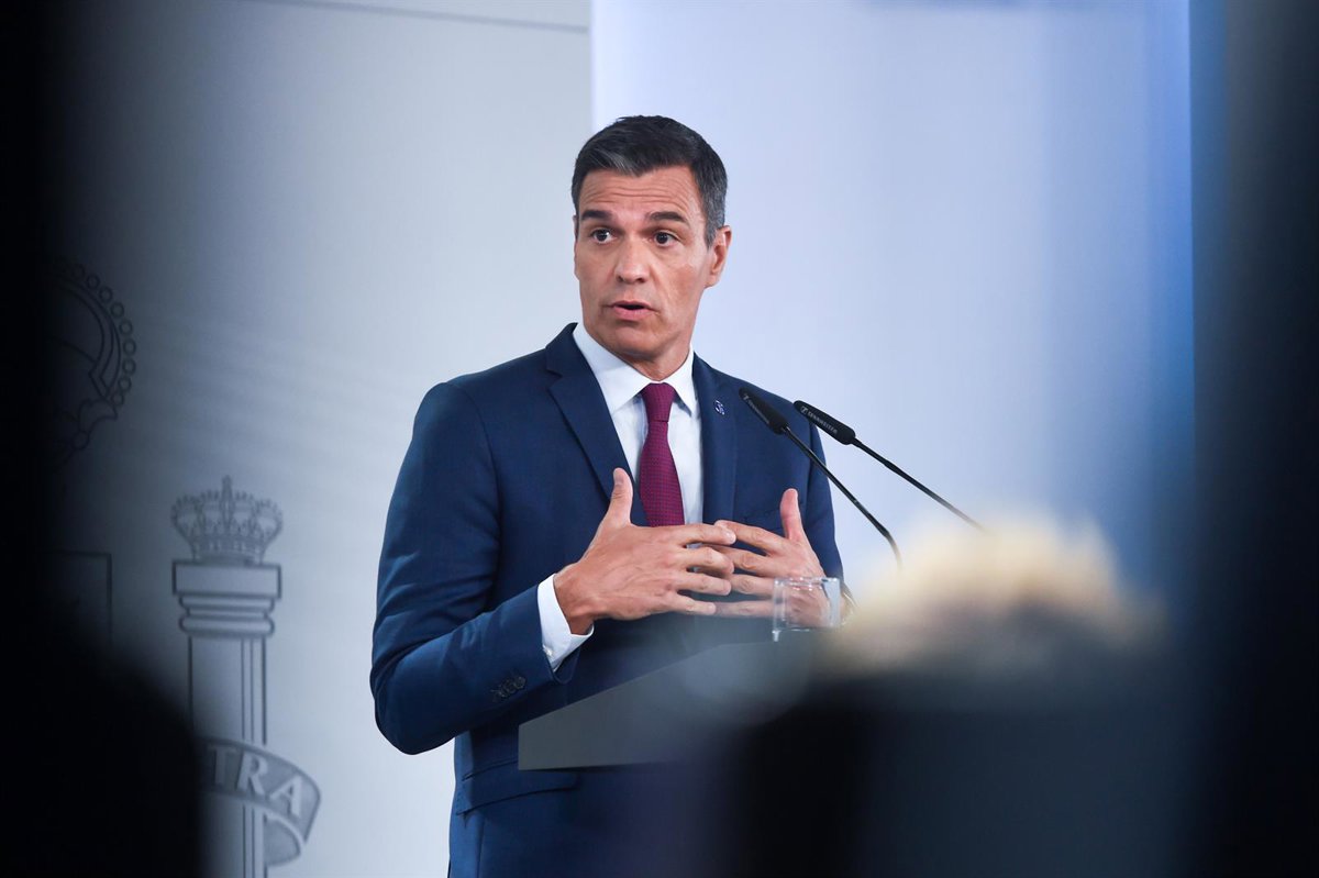 El presidente del Gobierno en funciones, Pedro Sánchez, durante una rueda de prensa en el Palacio de la Moncloa, a 22 de agosto de 2023, en Madrid (España). E - Gustavo Valiente - Europa Press