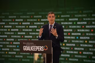 El presidente del Gobierno, Pedro Sánchez, interviene en el acto Goalkeepers de la Fundación Bill y Melinda Gates en el Jazz at Lincoln Center - Sam Simmonds - Europa Press