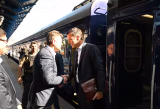 El presidente del Gobierno de España, Pedro Sánchez, llega a Kiev en el primer día de la presidencia española del Consejo de la UE. - POOL MONCLOA/BORJA PUIG DE LA BELLACAS