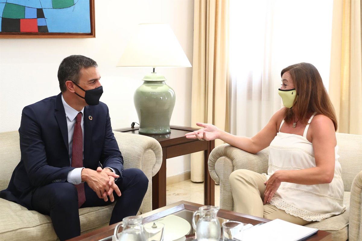 La presidenta del Govern, Francina Armengol, y el presidente del Gobierno, Pedro Sánchez, durante un encuentro en agosto de 2020. - Moncloa - Archivo