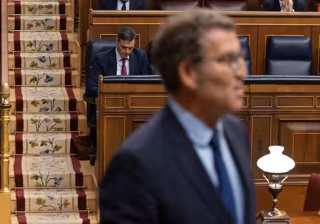 Archivo - El presidente del PP, Alberto Núñez Feijóo y detrás, el presidente del Gobierno, Pedro Sánchez, durante un pleno en el Congreso - Eduardo Parra - Europa Press - Archivo