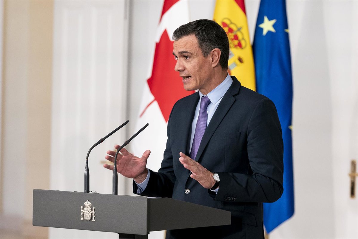 El presidente del Gobierno, Pedro Sánchez, comparece después de su reunión con el primer ministro de Canadá, en el Palacio de La Moncloa, a 30 de junio de 2022, en Madrid (España). - A. Pérez Meca - Europa Press