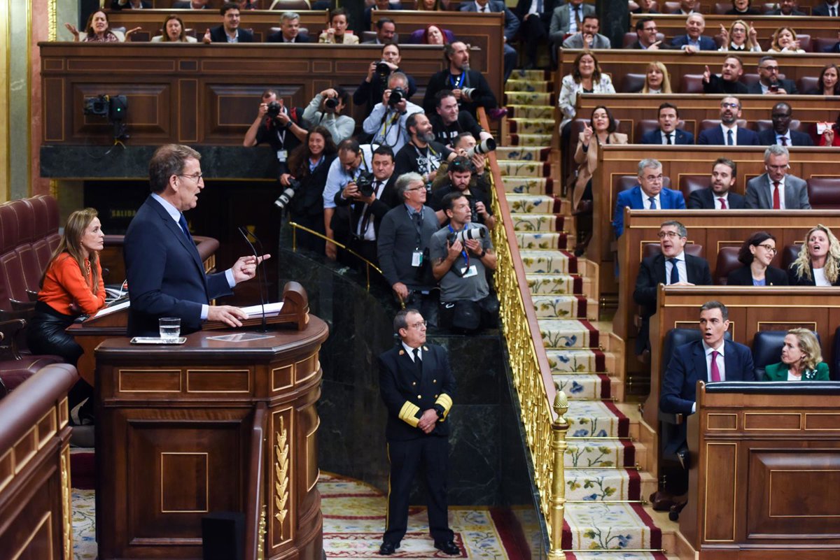 El presidente del Gobierno, Pedro Sánchez, y el líder del PP, Alberto Núñez Feijóo, afrontarán el próximo miércoles en el Pleno del Congreso su primer cara a cara desde la investidura en un clima de máxima tensión por asuntos como la tramitación de la ley de amnistía y la "entrega" de la Alcaldía de Pamplona a Bildu.