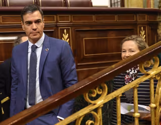El presidente del Gobierno, Pedro Sánchez y la vicepresidenta primera y ministra de Asuntos Económicos y Transformación Digital, Nadia Calviño, a su llegada a una sesión plenaria en el Congreso de los Diputados - Eduardo Parra - Europa Press