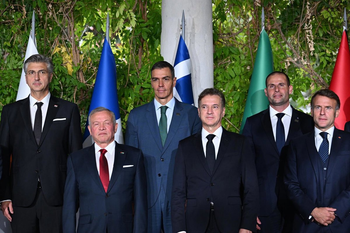 El presidente del Gobierno, Pedro Sánchez, posa junto a los líderes de los países UE MED-9 y al Rey de Jordania, Abdalá II, a 20 de octubre de 2025, en Portoroz (Eslovenia). - Pool Moncloa/Borja Puig de la Bellacasa